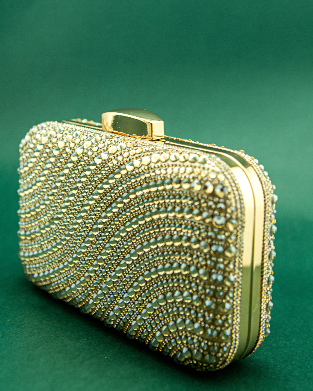 Carteira pedraria quadrada fecho metal.