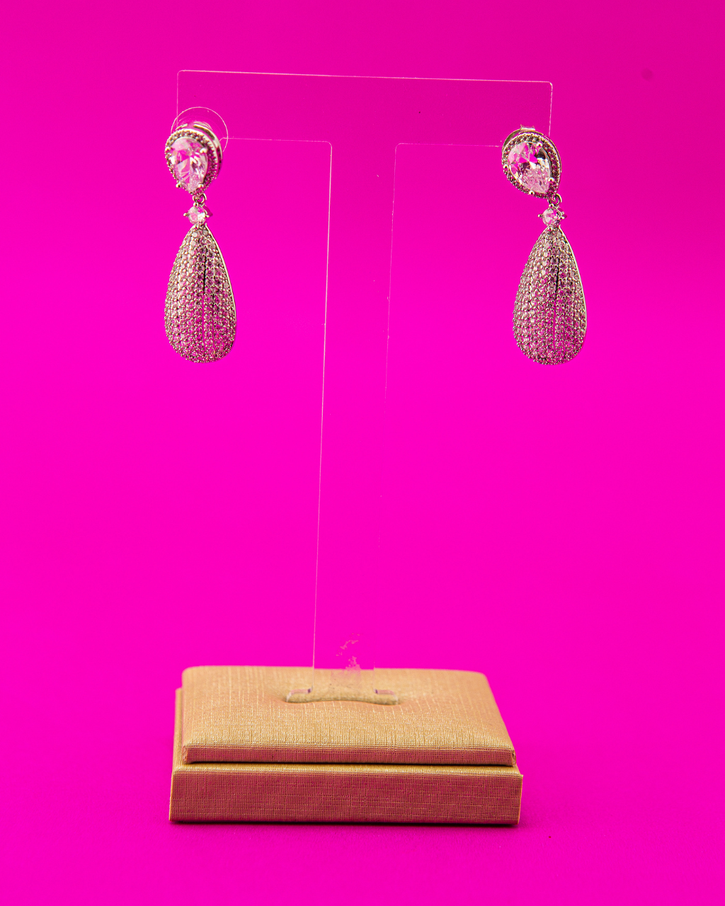 Brinco semi joia gota cravejado em zirconia.