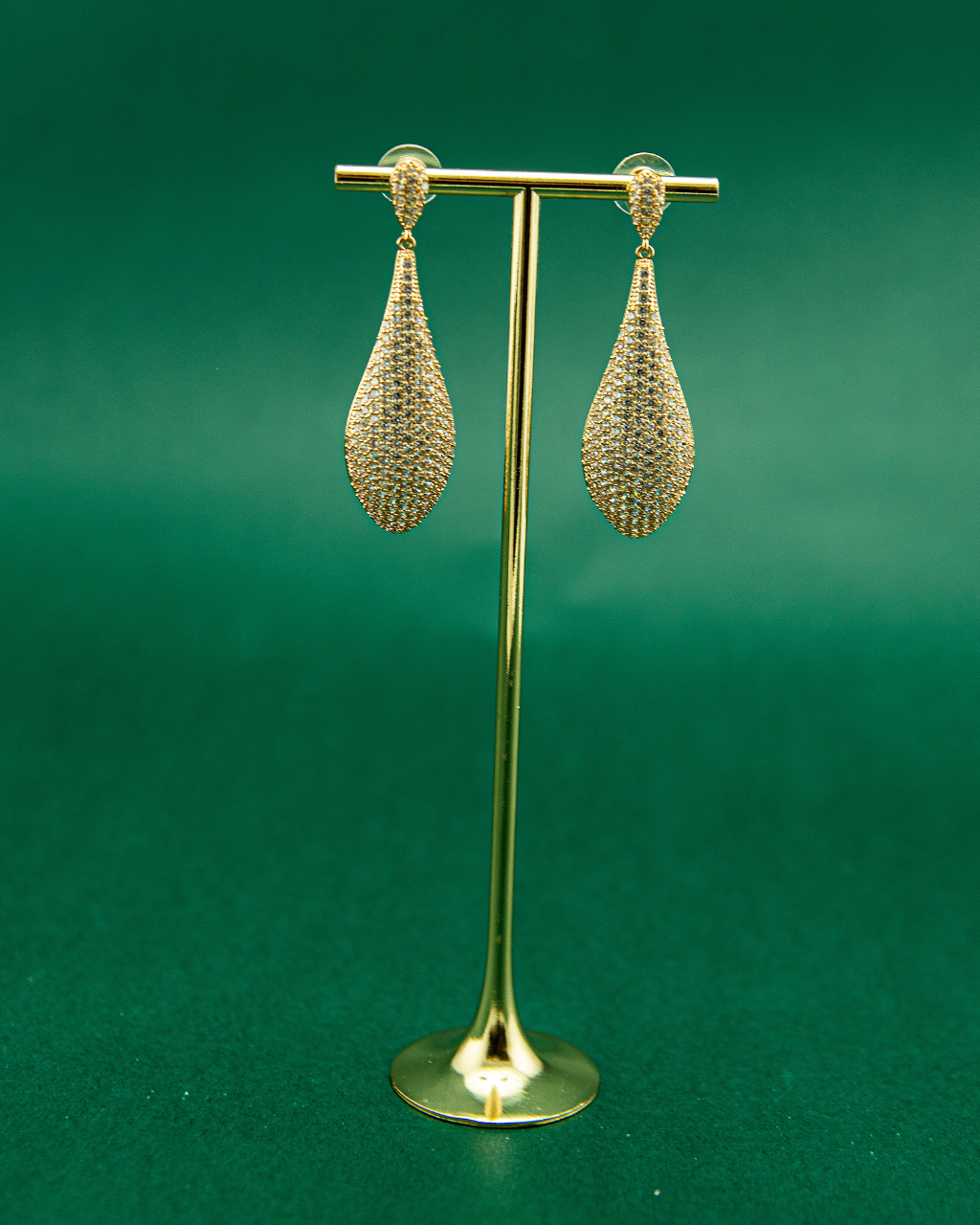 Brinco semi joia gota cravejado em zirconia.