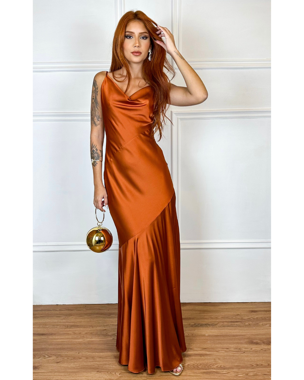 Vestido Cetim Ref. 048139 - TERRACOTA